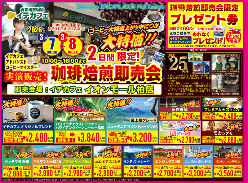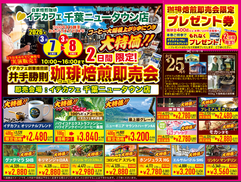 【3/7・3/8開催】珈琲焙煎即売会を開催!千葉ニュータウン店・イオンモール柏店